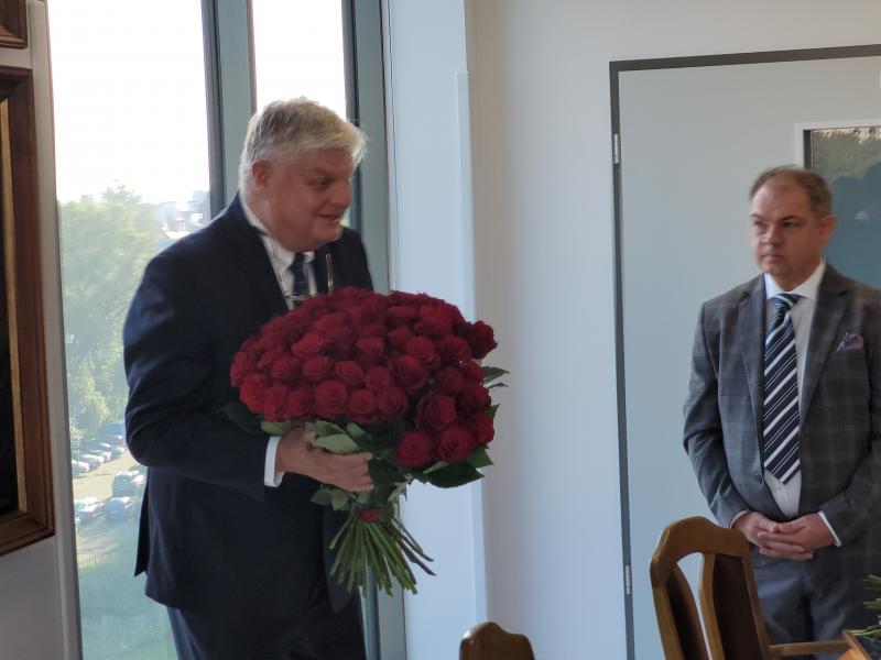 Zespół Kliniki podarował swemu dotychczasowemu szefowi duży bukiet czerwonych róż w podziękowaniu za wieloletnią współpracę i skierował pod Jego adresem wiele ciepłych słów, natomiast Dyrektor Beata Gawelska wręczyła Panu Profesorowi medal "Zasłużony dla Szpitala".