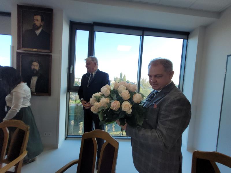 3. października, w nowej lokalizacji Kliniki Chirurgii Ogólnej, Gastroenterologicznej i Nowotworów Układu Pokarmowego (tj. w nowym budynku Szpitala G-16), odbyło się uroczyste spotkanie personelu tej jednostki z ustępującym ze stanowiska Kierownikiem Kliniki, Profesorem Grzegorzem Wallnerem oraz jego następcą - dr hab. Tomaszem Skoczylasem, prof. UM.