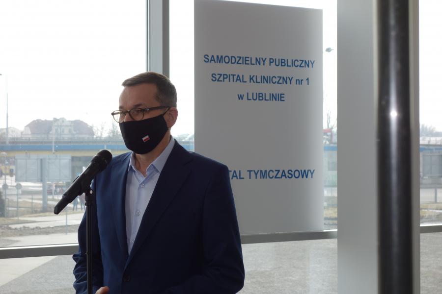 12 marca premier Mateusz Morawiecki przebywał w Lublinie. Jednym z istotnych punktów w harmonogramie szefa rządu była wizyta w Szpitalu Tymczasowym, działającym pod patronatem Samodzielnego Publicznego Szpitala Klinicznego Nr 1. Premier zwiedził tak zwane strefy "czyste" obiektu w towarzystwie Wojewody Lubelskiego Lecha Sprawki, Dyrektor Naczelnej SPSK 1 lek. med. Beaty Gawelskiej, Prorektora UM w Lublinie Profesora Marka Sawickiego, koordynatora Szpitala Tymczasowego dra Michała Soleckiego, prezesa Targów Lublin Roberta Głowackiego. Następnie odbyła się konferencja prasowa.