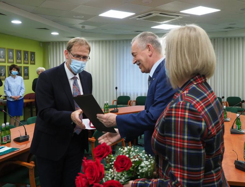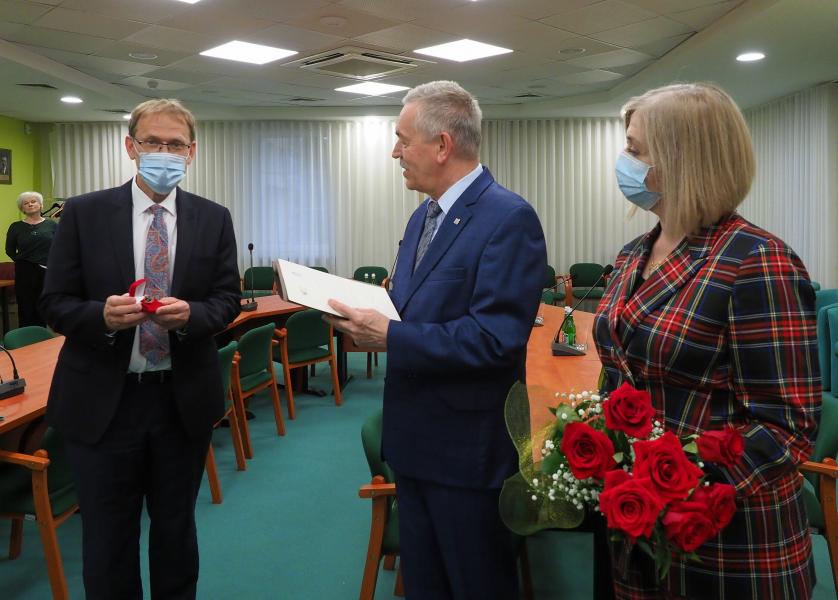 Pan Profesor odebrał odznaczenie 25 maja w siedzibie Okręgowej Rady Lekarskiej z rąk prezesa ORL Leszka Buka.