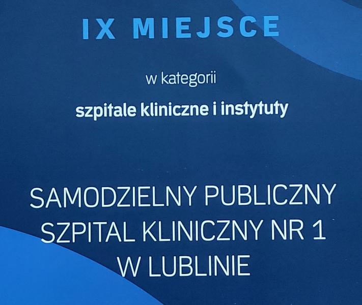 Pierwsza dziesiątka w Polsce w kategorii "Instytuty i Szpitale Kliniczne":