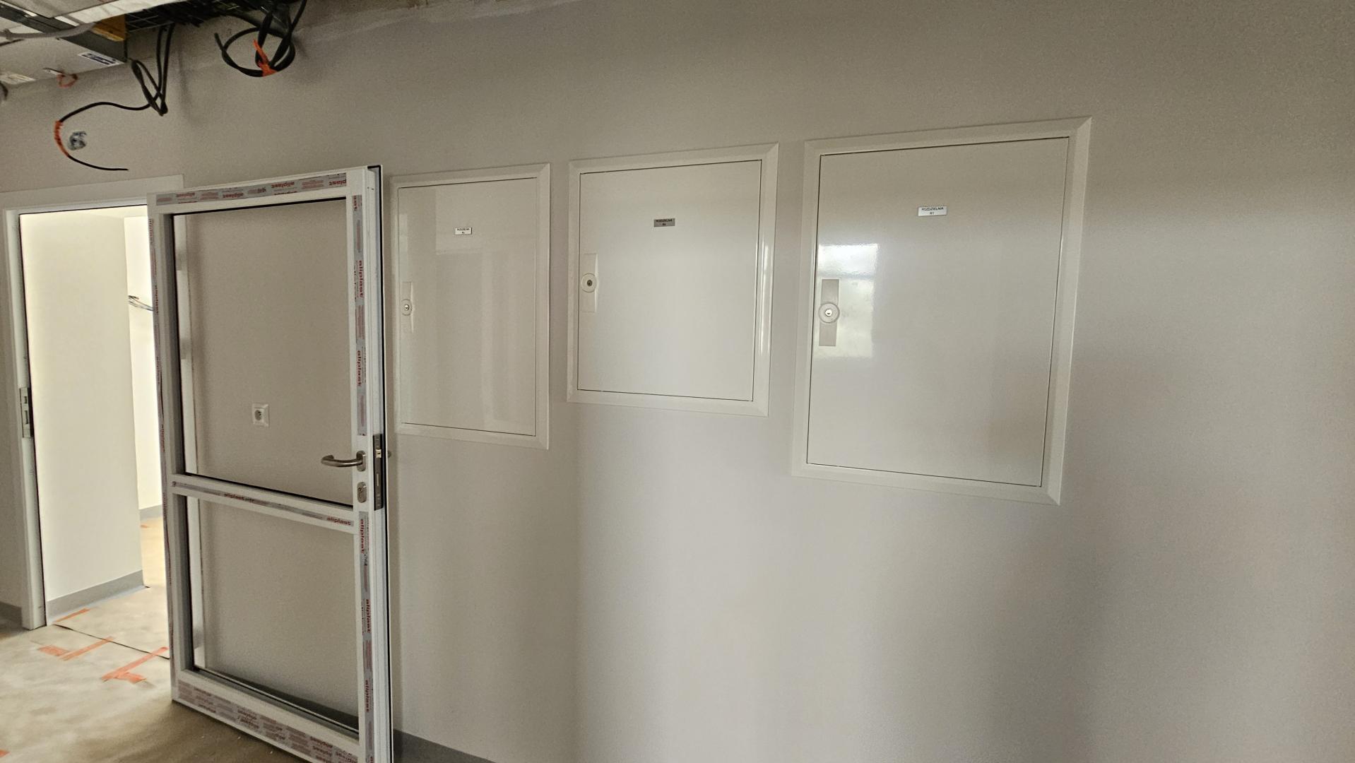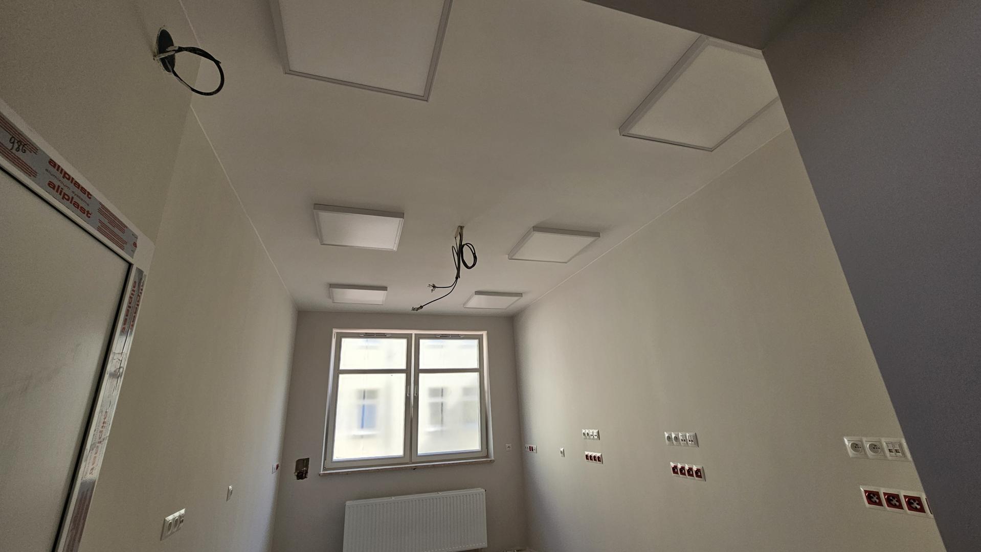 W zakresie instalacji elektrycznych i teletechnicznych dostarczono oprawy oświetleniowe oraz rozpoczęto ich montaż, jak również kontynuowano prace związane z instalacją urządzeń systemu sygnalizacji przyzywowej.