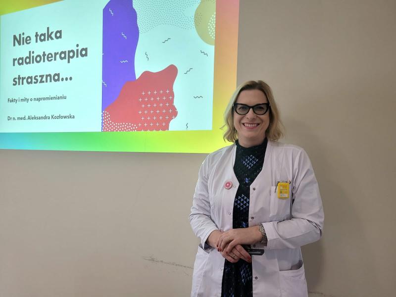 W ramach cyklu "ONKO - środy w USK 1", 21. lutego odbył się pierwszy wykład pt. "Nie taka radioterapia straszna! Fakty i mity na temat napromieniania". Z pacjentami oraz innymi osobami zainteresowanymi nowoczesną radioterapią spotkała się dr n. med. Aleksandra Kozłowska - Kierownik Zakładu Radioterapii USK 1 w Lublinie. Dr A. Kozłowska poruszyła zarówno wątki historyczne, opowiadając o początkach radioterapii, sięgających końca XIX w., przedstawiła również ewolucję tej formy leczenia, z uwzględnieniem najnowszych i najbardziej skutecznych metod terapii dostępnych dziś. Słuchacze dowiedzieli się o faktach i mitach dotyczących radioterapii oraz o praktycznych aspektach przygotowania się do leczenia w Zakładzie Radioterapii USK 1.