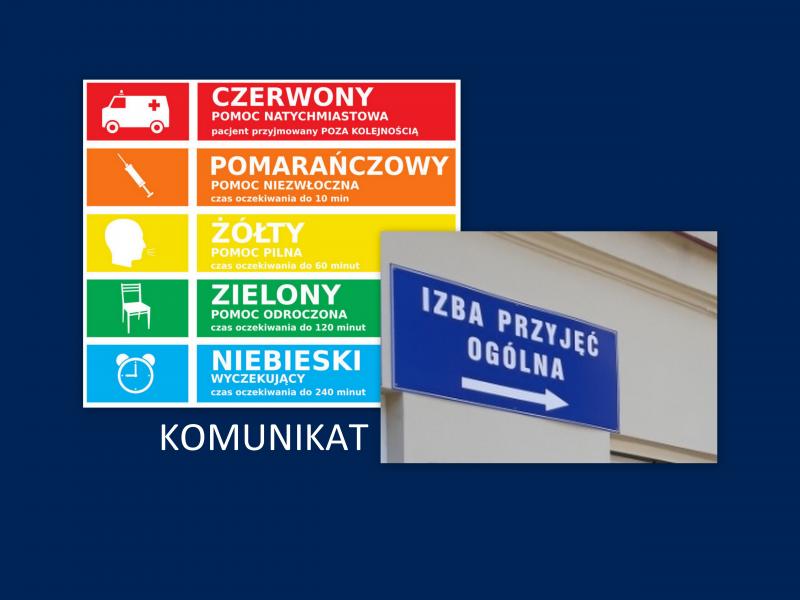 Ponadto przypominamy pacjentom i pacjentkom, że zgodnie z komunikatem Ministerstwa Zdrowia pn. "Dobre Praktyki Postępowania w Szpitalnych Oddziałach Ratunkowych i w Izbach Przyjęć", jednostki te udzielają świadczeń opieki zdrowotnej polegających na wstępnej diagnostyce oraz podjęciu leczenia w zakresie niezbędnym dla stabilizacji funkcji życiowych osób, które znajdują się w stanie nagłego zagrożenia zdrowotnego.”