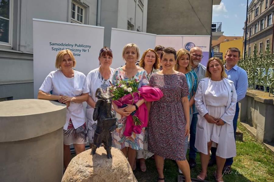 Odsłonięcie rzeźby trzeciego lubelskiego koziołka, Stasia - medyka przy budynku SPSK1, ul. Staszica 11