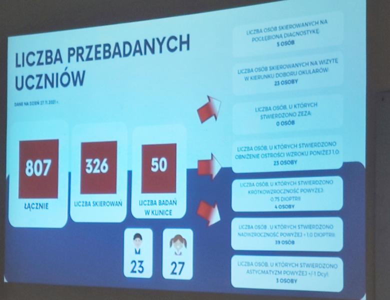 W badaniach przesiewowych przebadano grupę 807 uczniów, w której wystawiono aż 326 skierowań - u około 40% dzieci wykryto schorzenia wzroku wymagające dalszego leczenia, w tym obniżenie ostrości wzroku, krótkowzroczność, nadwzroczność czy astygmatyzm. Są to konsekwencje nauki zdalnej, spędzania również czasu wolnego przez dzieci przed komputerami, smartfonami i ekranami. Wyniki badań jednoznacznie wskazują na sens rozwijania programu "Dobrze widzieć" w wariancie akcji ogólnopolskiej.