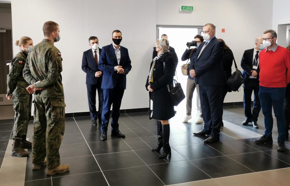 12 marca premier Mateusz Morawiecki przebywał w Lublinie. Jednym z istotnych punktów w harmonogramie szefa rządu była wizyta w Szpitalu Tymczasowym, działającym pod patronatem Samodzielnego Publicznego Szpitala Klinicznego Nr 1. Premier zwiedził tak zwane strefy "czyste" obiektu w towarzystwie Wojewody Lubelskiego Lecha Sprawki, Dyrektor Naczelnej SPSK 1 lek. med. Beaty Gawelskiej, Prorektora UM w Lublinie Profesora Marka Sawickiego, koordynatora Szpitala Tymczasowego dra Michała Soleckiego, prezesa Targów Lublin Roberta Głowackiego. Następnie odbyła się konferencja prasowa.