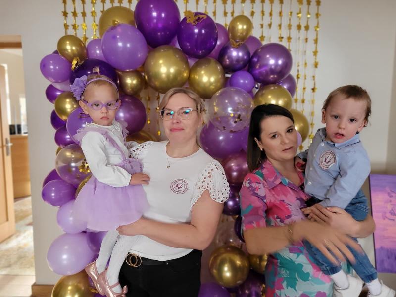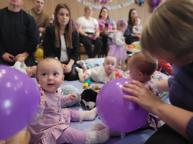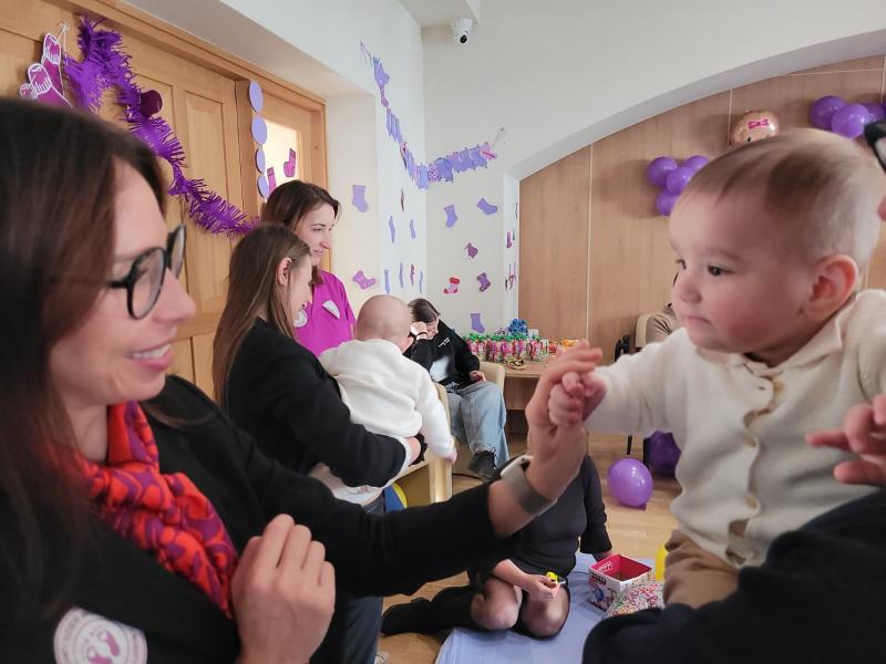 Cały personel Kliniki oraz Oddziału Noworodkowego był dziś naprawdę dumny i wzruszony, obserwując wesołe i zadowolone dzieci: Anię, Henia, Mikołaja, Zosię, Kaję, Miłosza, Adasia i inne Maluchy - nasze Wcześniaki! Choć niegdyś przedwcześnie przyszły na świat, niektóre z wagą urodzeniową 760 - 800 g, dziś były wulkanami energii i obdarzały wszystkich uśmiechami uroczo tańcząc i śpiewając. Dominowały fioletowe dekoracje, wśród nich maleńkie skarpetki, będące symbolem wszystkich wcześniaków.