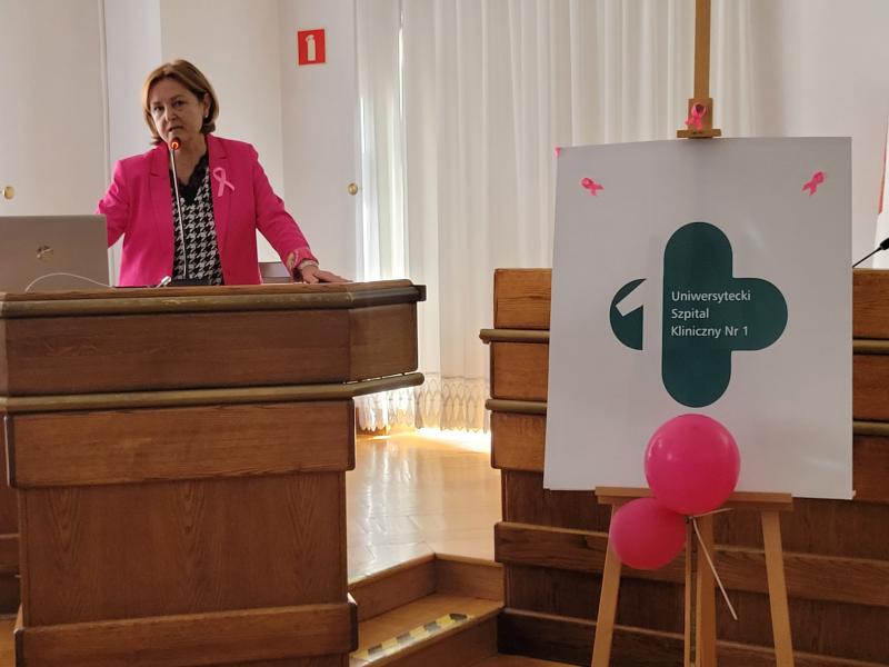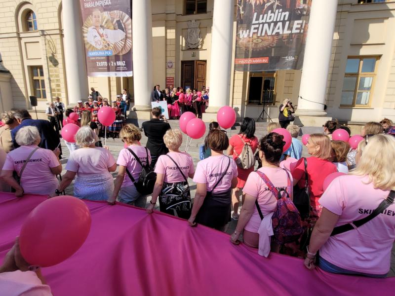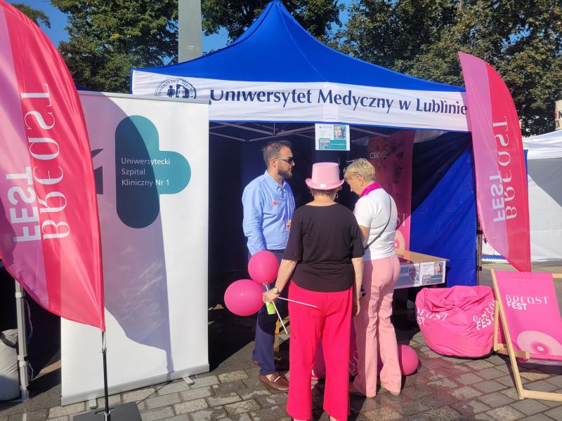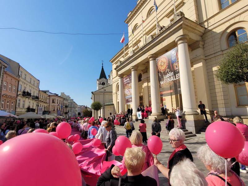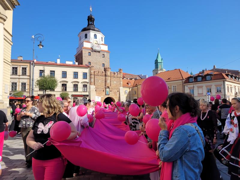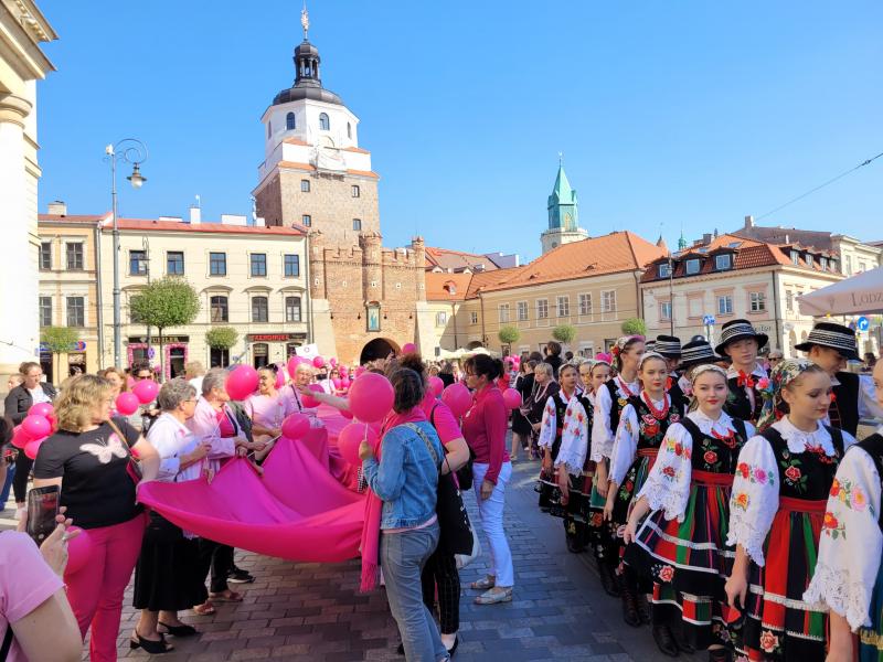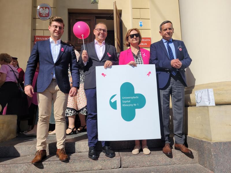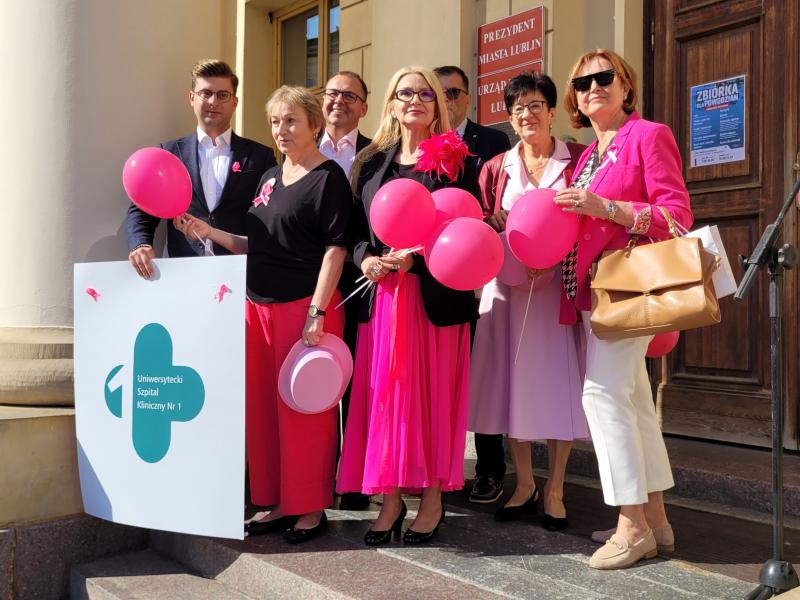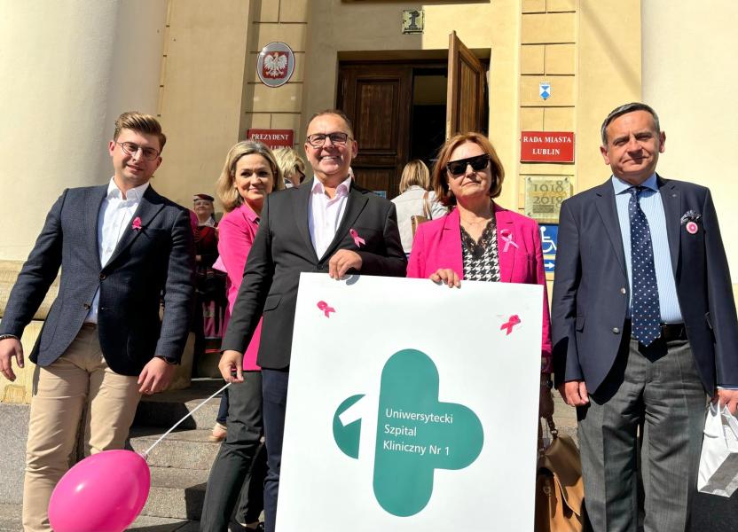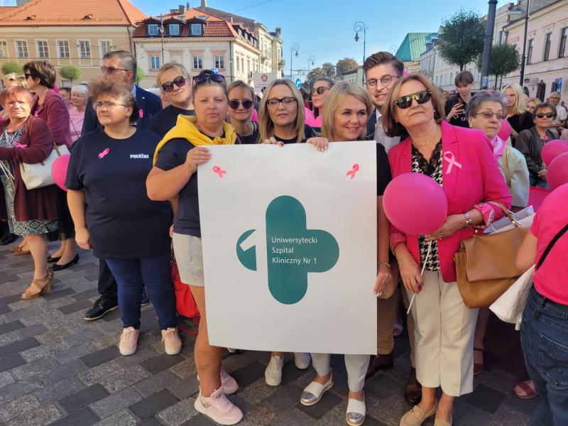 19. września odbył się w Lublinie Marsz Różowej Wstążki. O godz.13 zaproszono jego uczestników do Ratusza na panel ekspercki, w którym udział wzięli lekarze z Uniwersyteckiego Szpitala Klinicznego Nr 1 - prof. Andrzej Kurylcio i lek. med. Ernest Starek, po czym nastąpił uroczysty wymarsz różowego korowodu w stronę Placu Litewskiego. Poza panelistami w otwarciu Marszu uczestniczyli: prof. Wiesława Bednarek, prof. Rafał Tarkowski, lek. med. Paweł Bogacz i reprezentacja pań położnych - wszyscy są pracownikami naszego szpitala z Kliniki Ginekologii Onkologicznej i Ginekologii oraz z Kliniki Chirurgii Onkologicznej. Na Placu Litewskim zorganizowano stoiska medyczne, jedno z nich pod szyldem USK1 - chętne panie mogły skorzystać z konsultacji w zakresie leczenia raka piersi i dowiedzieć się o odbywającym się wkrótce wydarzeniu Breast Fest, na które serdecznie zapraszamy!