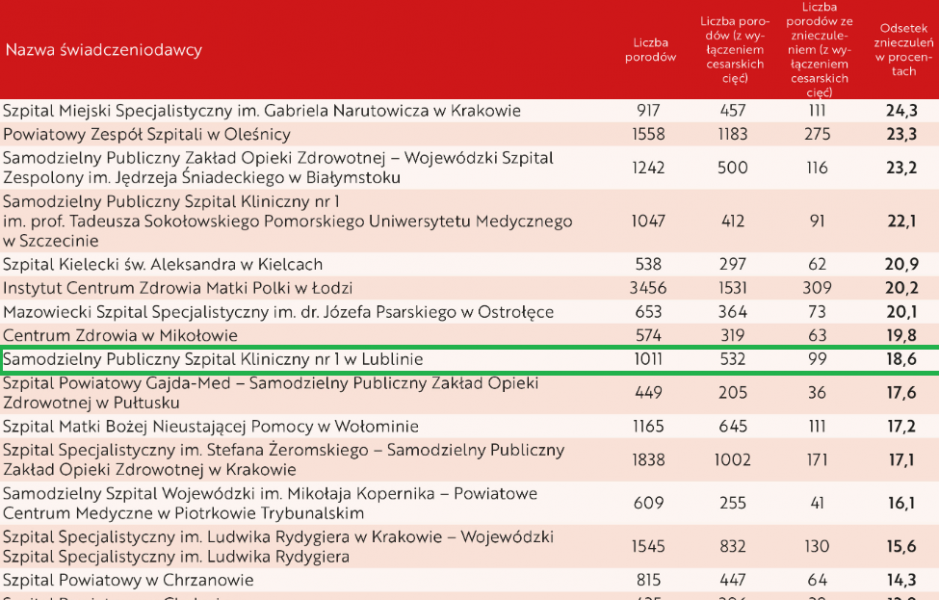 USK1 w Lublinie z największym odsetkiem znieczuleń do porodu w województwie lubelskim