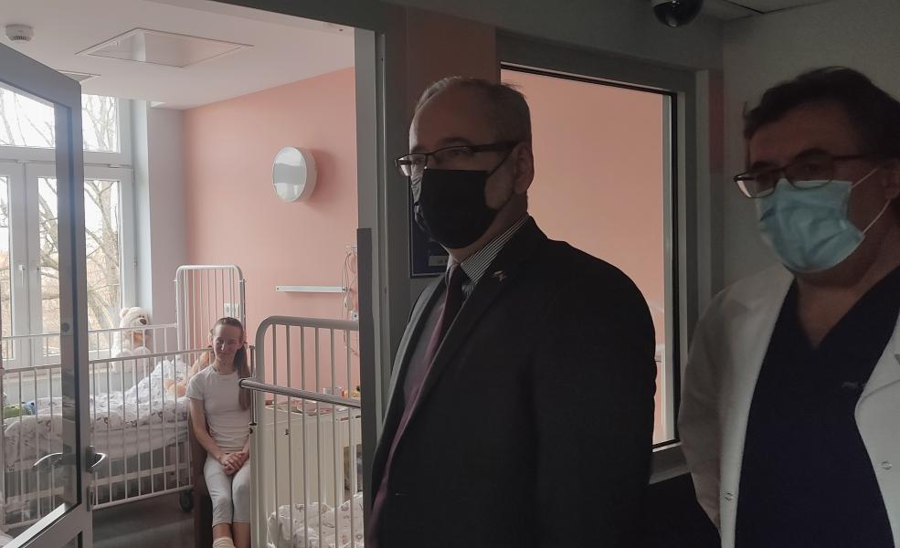 Minister Adam Niedzielski spotkał się również z Dyrektor Naczelną Szpitala Beatą Gawelską i wspólnie odwiedzili Oddział Okulistyki Dziecięcej, na którym przybywają poszkodowani podczas wojny w Ukrainie najmłodsi pacjenci.