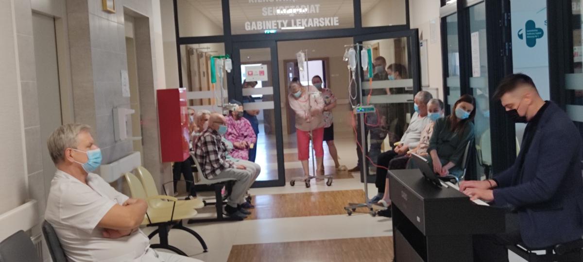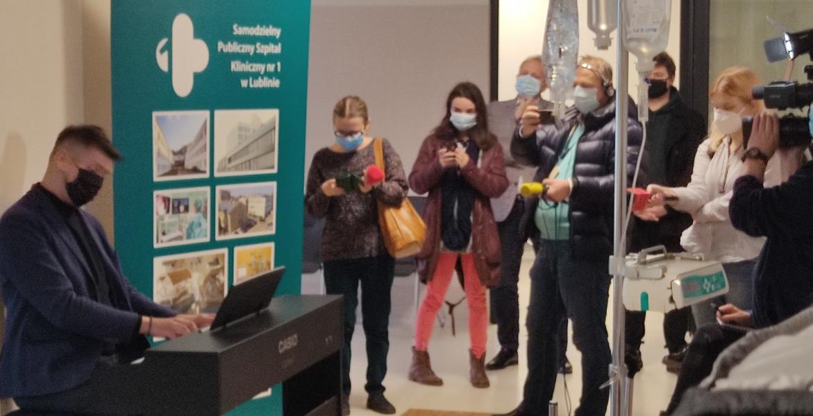 Dziś w naszym Szpitalu odbył się wyjątkowy koncert, dedykowany pacjentkom i pacjentom Kliniki Chirurgii Onkologicznej SPSK Nr 1 przy ul. Radziwiłłowskiej. Rozpoczęliśmy w ten sposób cykl czwartkowych, kameralnych spotkań z muzyką pod hasłem "Muzyka leczy...". Wydarzenia te będą odbywać się dwa razy w miesiącu na mocy porozumienia zawartego pomiędzy Instytutem Muzyki UMCS i Samodzielnym Publicznym Szpitalem Klinicznym Nr 1. Pianino zakupione zostało do Kliniki dzięki realizowanemu przez Uniwersytet Medyczny w Lublinie projektowi pn. "Muzykoterapia w onkologii", w który wpisuje się ta inicjatywa.