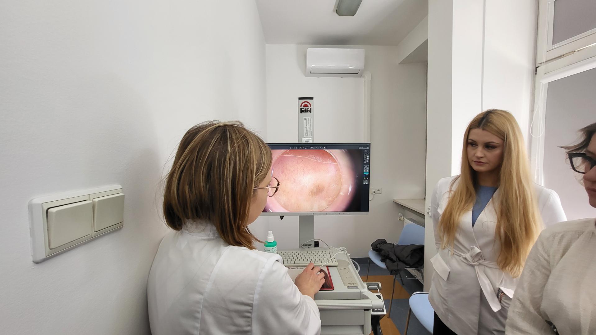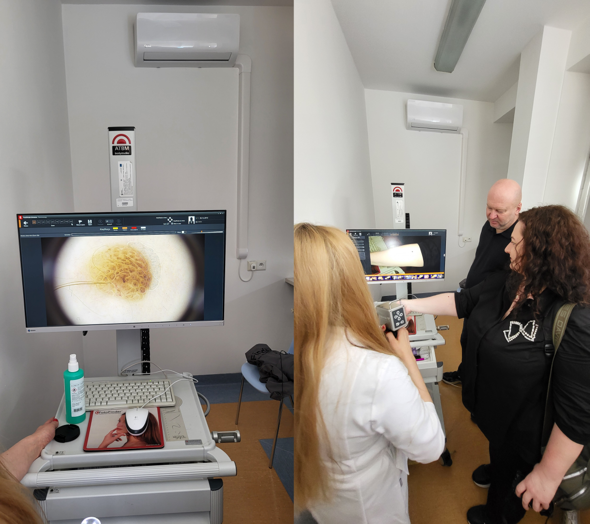 Profesor dr hab. n. med. Dorota Krasowska, kierownik Kliniki przywitała gości i zaprezentowała działalność kliniczną, metody terapeutyczne, diagnostyczne i nowoczesne technologie wykorzystywane w leczeniu. Partnerzy projektu wzięli udział we wspólnych badaniach i zapoznali się z obowiązującymi w Uniwersyteckim Szpitalu Klinicznym Nr 1 standardami opieki nad pacjentem oraz nowoczesnymi metodami leczenia chorób skóry.