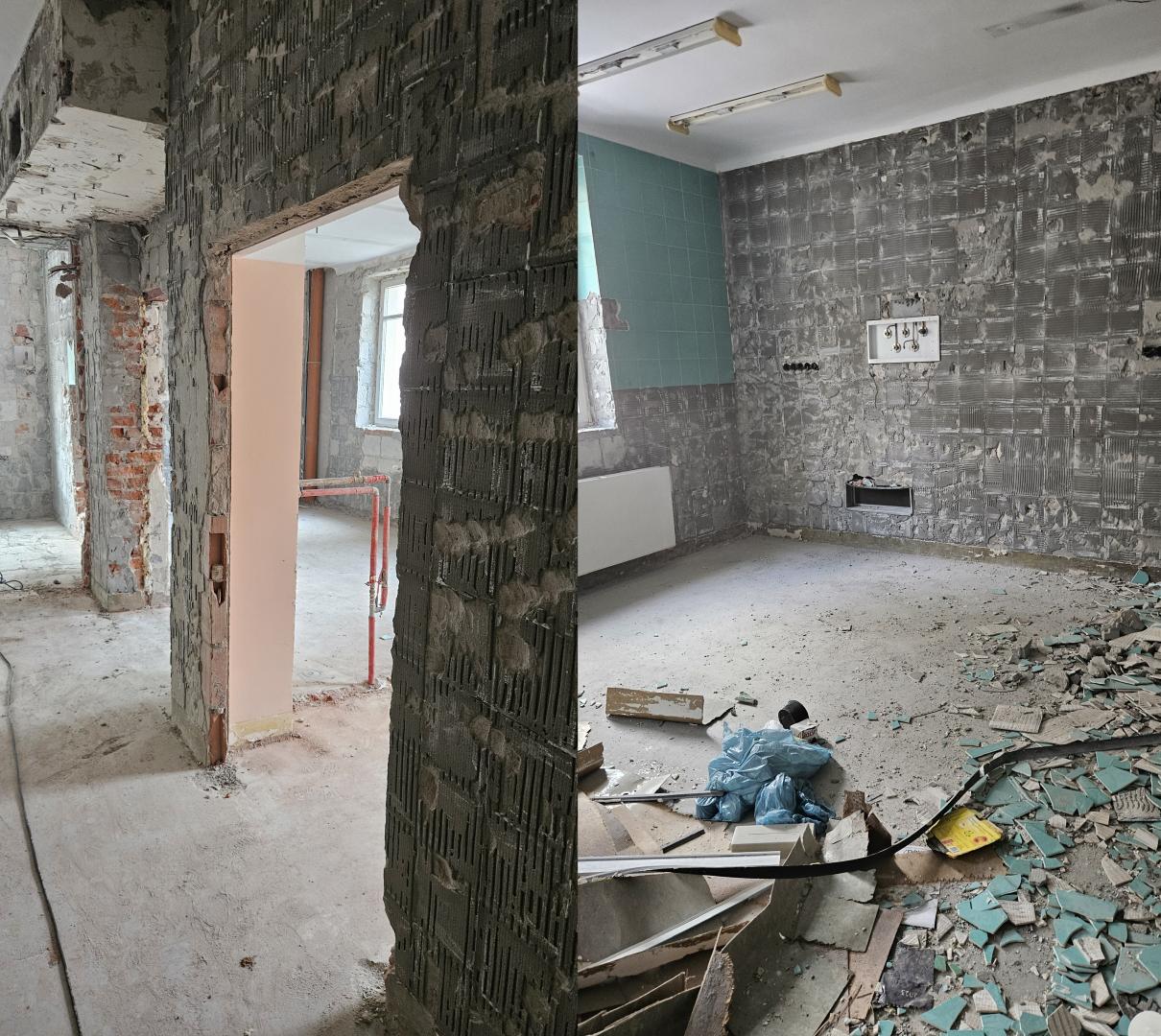 Następnym etapem modernizacji będzie instalacja ścianek działowych, montaż tras kablowych, instalacji elektrycznej i wodno-kanalizacyjnej.